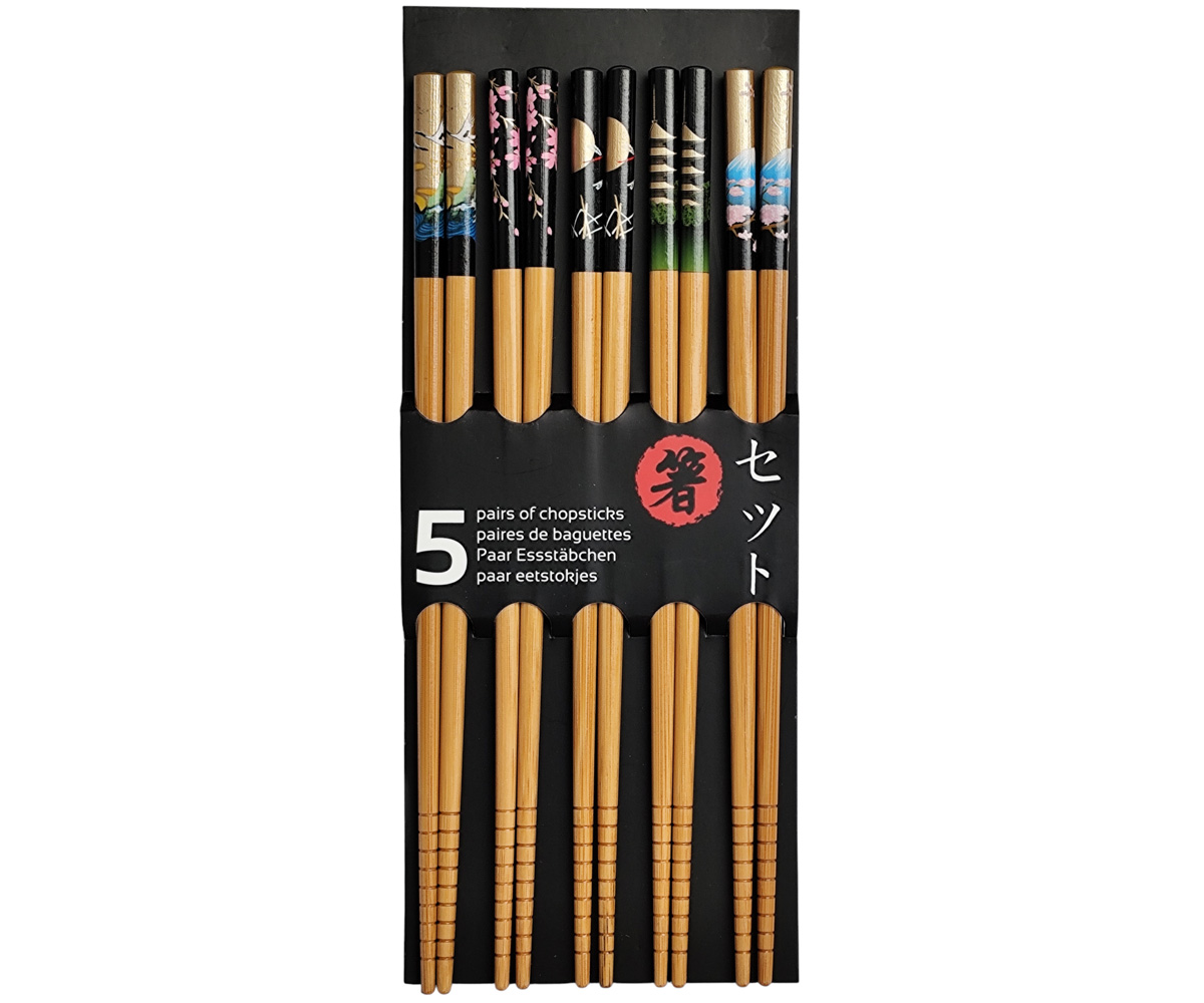 5 Paar Bambus-Essstäbchen mit traditionellen japanischen Symbolmotiven
