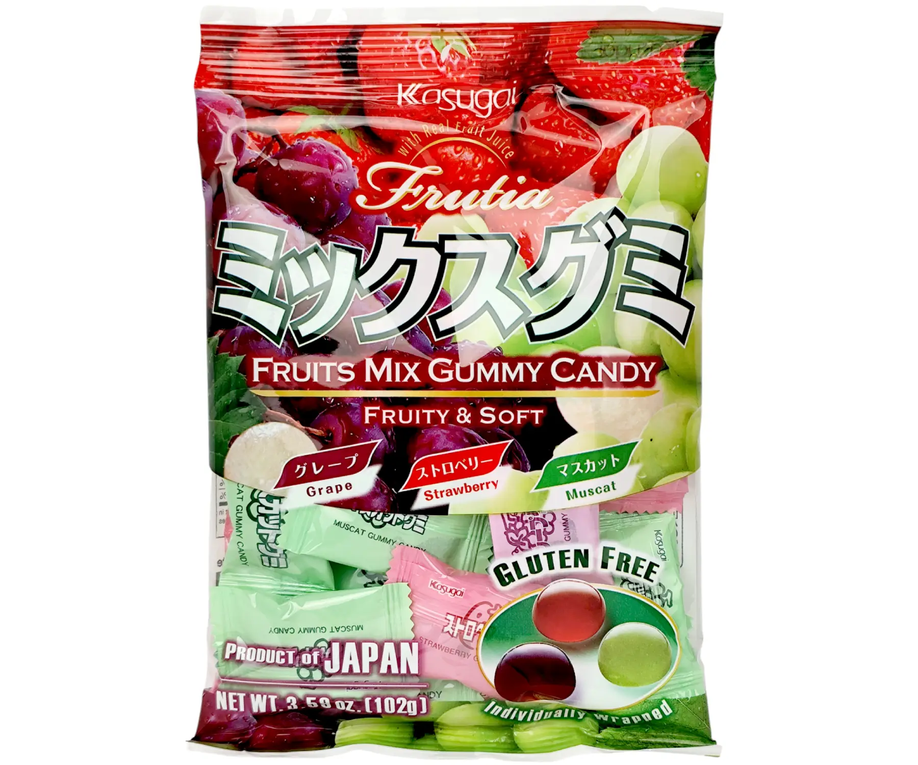Der Japanische Fruchtgummi Mix von Kasugai bietet eine köstliche Auswahl beliebter Fruchtsorten – darunter Traube und Erdbeere – mit intensivem, natürlichem Aroma und angenehm weicher Konsistenz. Die Fruchtgummis überzeugen durch ihren saftigen Biss und den authentischen Geschmack, für den Kasugai weltweit bekannt ist.