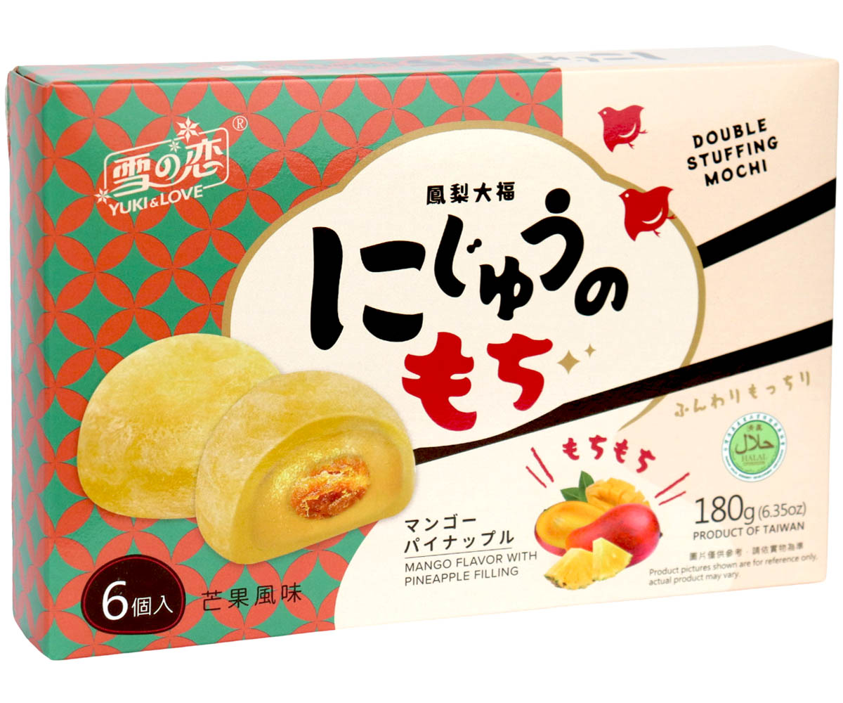 Diese taiwanesischen Mochi von Y&L vereinen zarten Reisteig mit einer tropisch-fruchtigen Füllung aus Ananas und Mango. Die Kombination aus weich-elastischer Konsistenz und der angenehm süßen, leicht säuerlichen Füllung macht jeden Bissen zu einem kleinen Urlaubsmoment. Ideal als Dessert, Snack oder Geschenk für Liebhaber asiatischer Süßigkeiten. In jeder Packung befinden sich 6 Stück – sofort genussbereit.