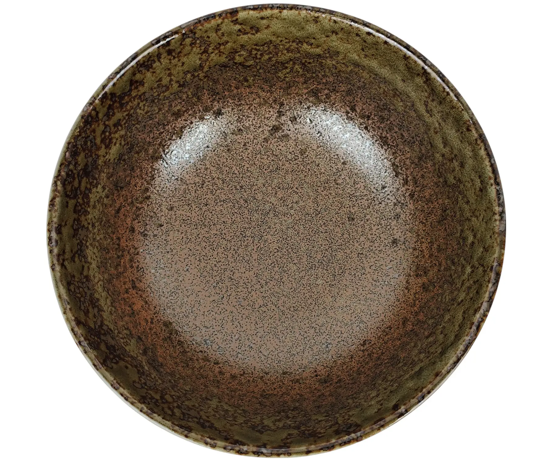 - Farbdesign: Moosgrün-brauner Farbverlauf, von glänzendem Rand zu mattem Boden